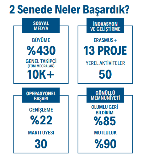 2022 yılında başladığımız bu eşsiz Erasmus+ macerasında Avrupa'nın muhteşem coğrafyasına yayılan 13 uluslararası projeyi başarıyla tamamladık. Her bir projemizde yaş ve cinsiyet dengesine büyük özen göstererek, toplamda 74 katılımcının hayallerini gerçeğe dönüştürdük. Bu projeler, sadece haritalarda değil, kalplerde de izler bıraktı. Gençlerimizin ufuklarını genişleterek, kültürel köprüler kurmalarına olanak tanıdık. Yenilikçi fikirlerin, kültürel alışverişin ve dostlukların yeşerdiği bu yolculukta, her bir projemiz birer başarı öyküsüydü.